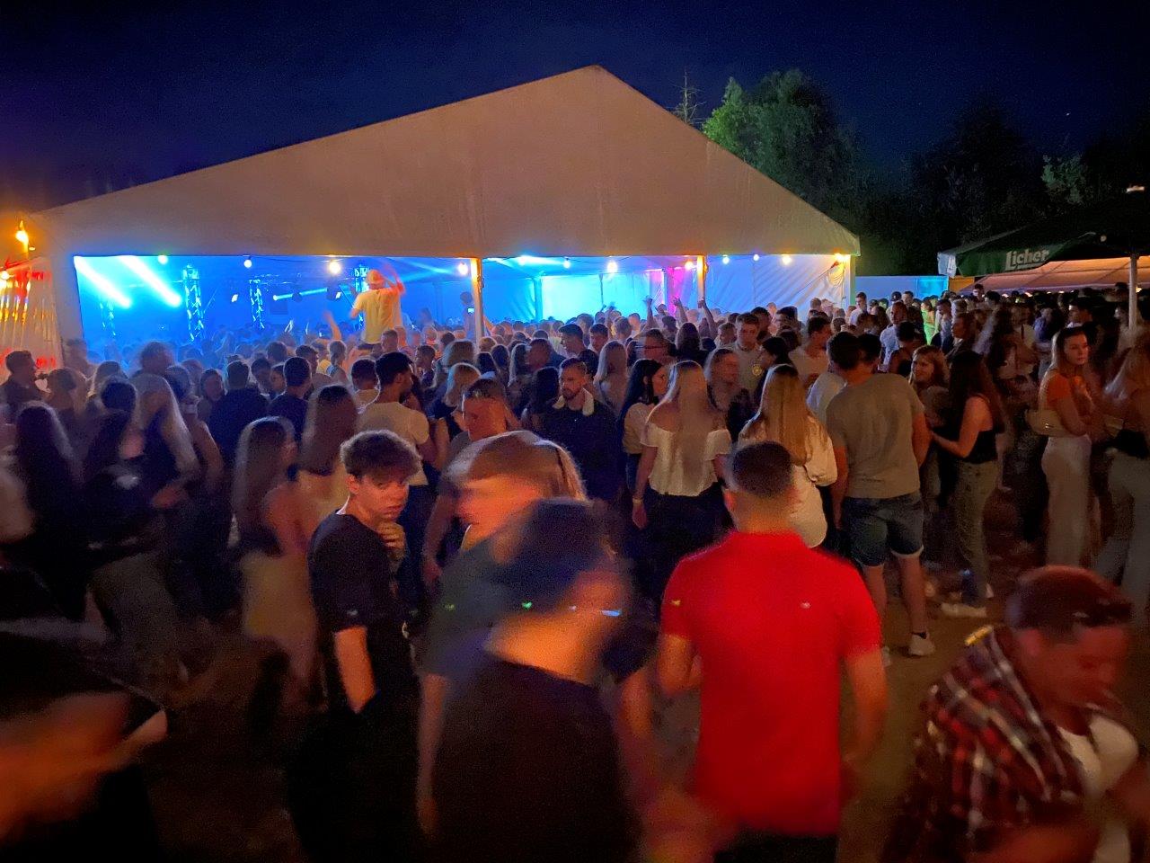 Nachdem in den zwei Wochen vor der Veranstaltung der Platz, das Zelt und die Technik von den immer gleichen Personen hergerichtet und vorbereitet wurde, deutete sich schon am späten Nachmittag an, dass es „voll“ werden könnte. Das „9-Euro-Ticket“ sorgte dafür, dass viele Besucher mit Bussen und Bahn anreisten. Daher bildete sich auch schon lange vor Kassenöffnung eine Schlange am Eintritt. Diese blieb dann durchgehend bis kurz vor Mitternacht bestehen.